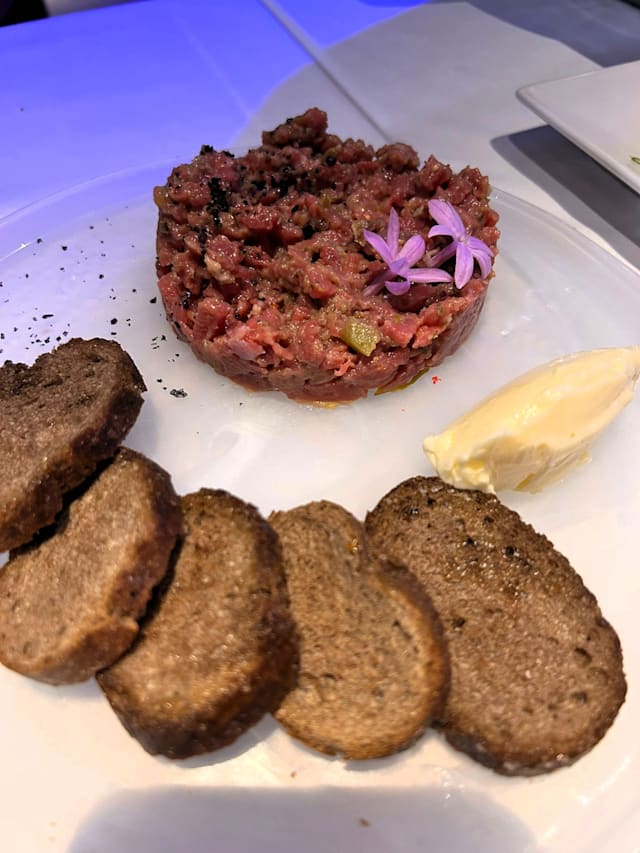 Steak tartar de filet de vedella 100g amb la nostra salsa secreta.