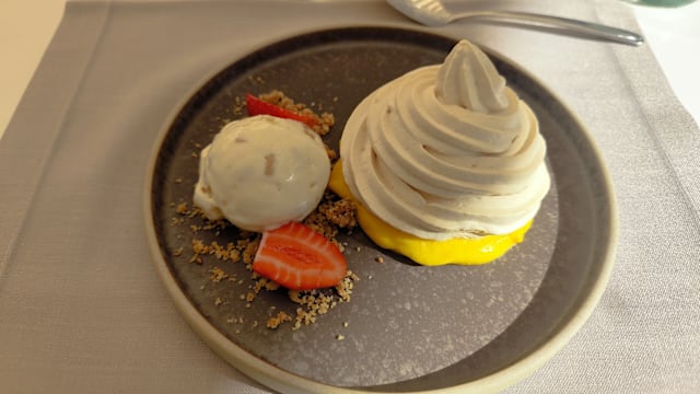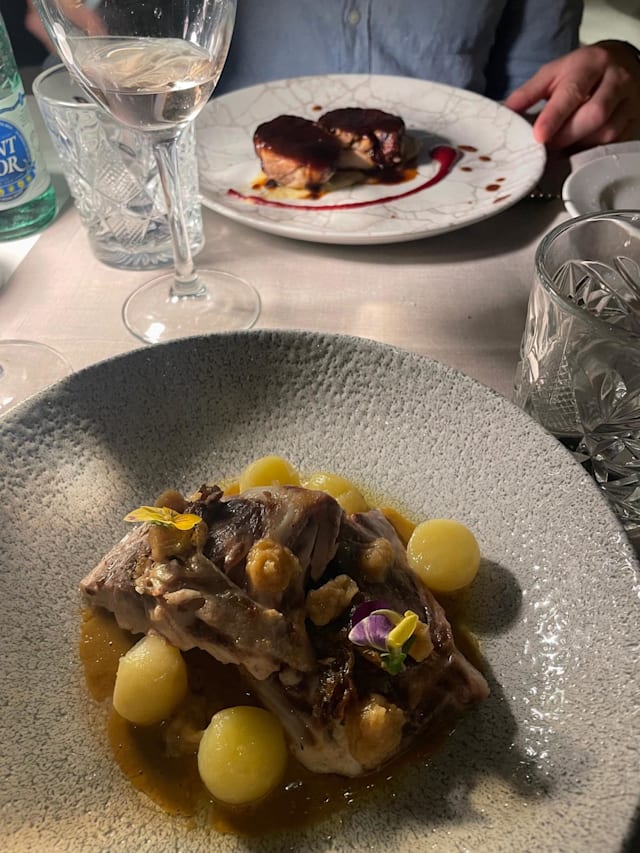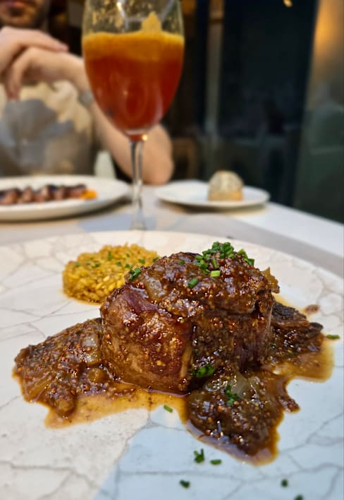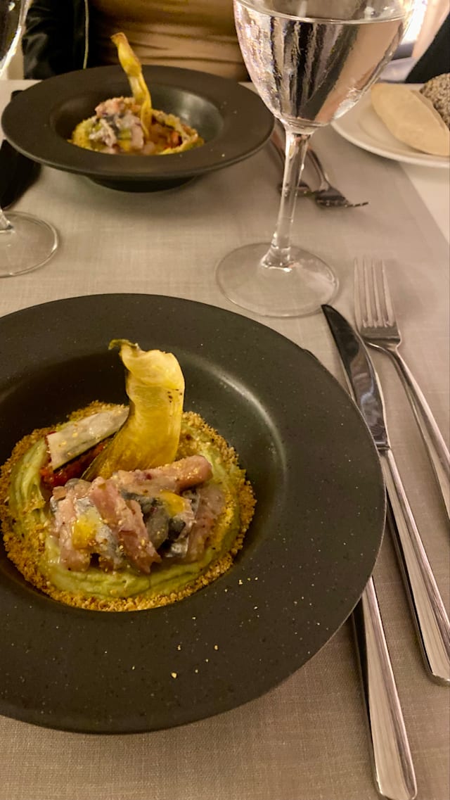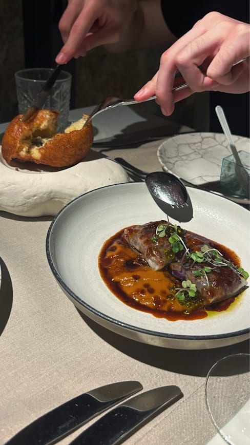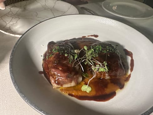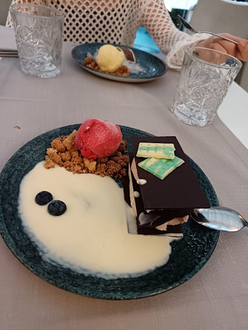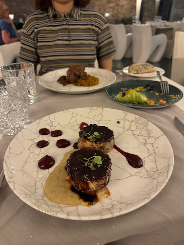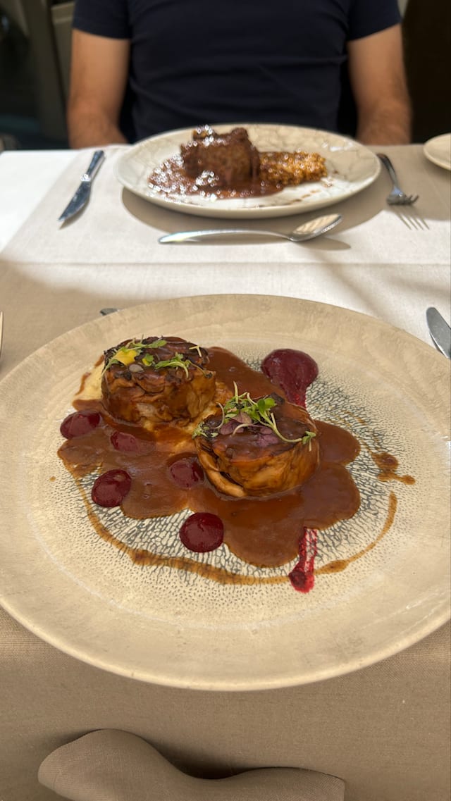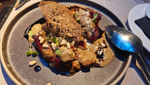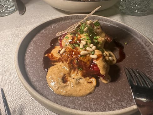 6.5/10to be fair to the restaurant, I wasn't in the right mood for a fancy lunch, so i started on the wrong foot. I was irritated that they refused to serve tap water, I find that a very unsustainable practice. they gave us a little welcome starter but didn't check dietary requirements so I couldn't eat it. there were not many vegetarian options. my main was so rich and heavy that I felt sick for the rest of the day. I didnt enjoy my meal, but my partner liked his. the waiters were very nice. I wouldnt go back.
