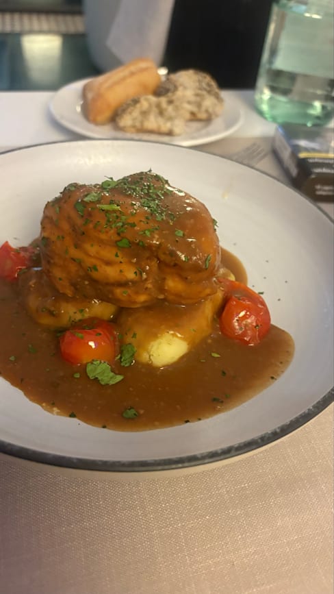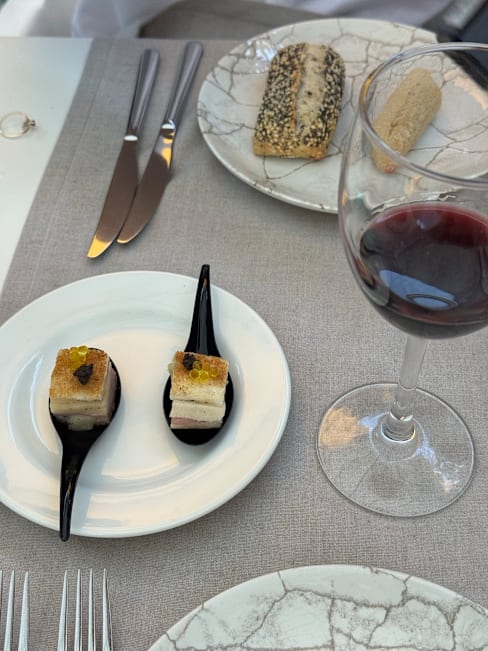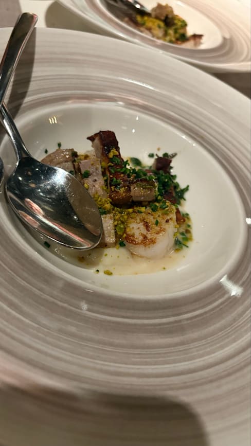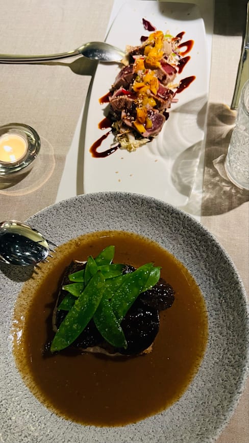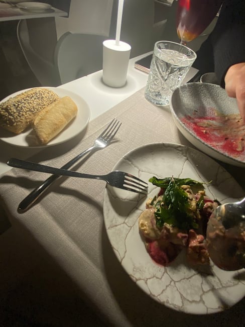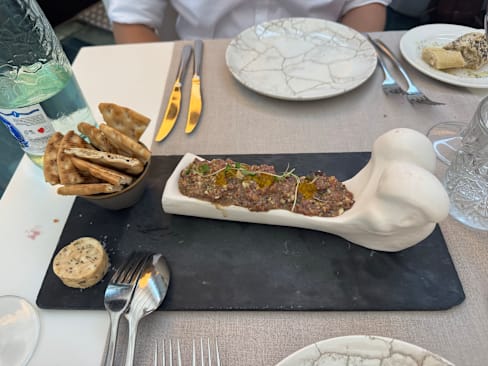 6.5/10to be fair to the restaurant, I wasn't in the right mood for a fancy lunch, so i started on the wrong foot. I was irritated that they refused to serve tap water, I find that a very unsustainable practice. they gave us a little welcome starter but didn't check dietary requirements so I couldn't eat it. there were not many vegetarian options. my main was so rich and heavy that I felt sick for the rest of the day. I didnt enjoy my meal, but my partner liked his. the waiters were very nice. I wouldnt go back.