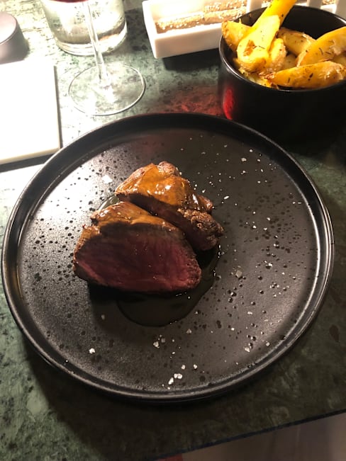 6.5/10This was a lovely setting for dinner and we had read good reviews of the food so we were looking forward to dining there! The food has a slight twist which worked to some extent but not always! The parmigiana starter was lovely but my partner wasn’t sure about his ravioli! I then ordered the entrecôte which may have been a mistake on my part as it tasted a bit too charcoaled for me. One of our main concerns was that we were brought a really tasty aperitif for tasting which was not ordered but we were charged anyway! It was also explained by the waiter that a cod dish ordered was served with chips - this turned out not to the case and this was an additional charge! My entrecôte also came with nothing - no sauce or sides! I didn’t mind ordering a side for this but the lack of any kind of sauce meant it felt a bit dry! It may just be that some of the food here wasn’t to our taste but overall it wasn’t the exceptional dinner we had hoped for and it was quite pricey to boot!