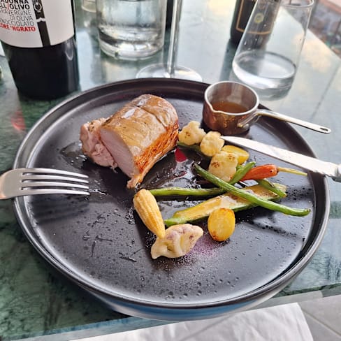 10/10I booked ahead and requested a table with a view, we arrived on time and were seated at a table with limited view, the table in front of us on the edge of the terrace was empty when we arrived, and remained empty when we departed, very frustrating to be disrespected, maybe because we are not Italian ! Put that to one side, the food was exceptionally good, I had the beef tartar, which was one of the best I’ve ever eaten, and I’ve eaten this many times, my wife had a pasta truffle starter, which was amazing, we both had fish for mains, different dishes but both were delicious, we shared a dessert, something to do with white chocolate, I don’t usually have dessert, but we shared this and it was very good ! I would definitely recommend this place, maybe speok to a member of management to ensure your seating request is honoured, before you sit, and you will enjoy your meal for sure !