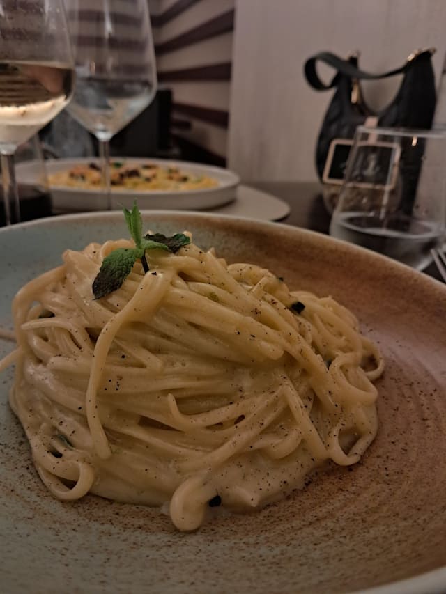 9/10Small but open space right on the piazza. Inventive dishes and traditional Italian. Really liked the pasta cacio e pepe with lime and mint as a twist and light summer pasta. Also the pasta with bianco/white ragù and cheese sauce.