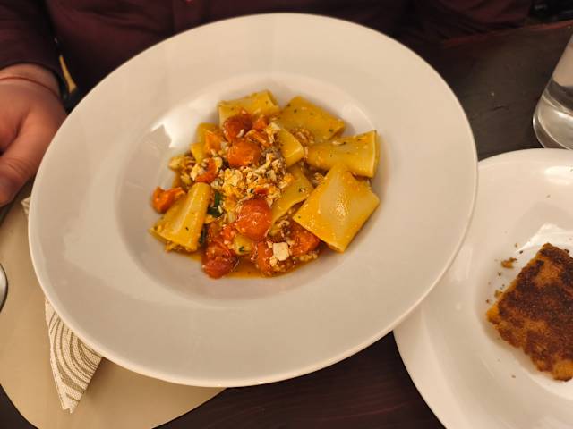 - Spaghettone alburro, gambero rosso e tartufo