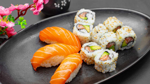 Saumon, avocat, menthe, tobiko, mayo
