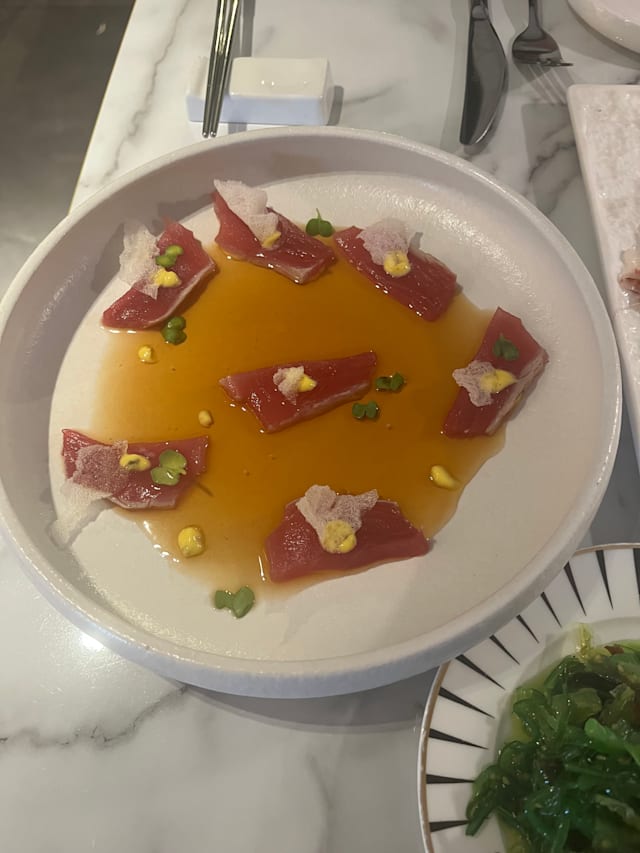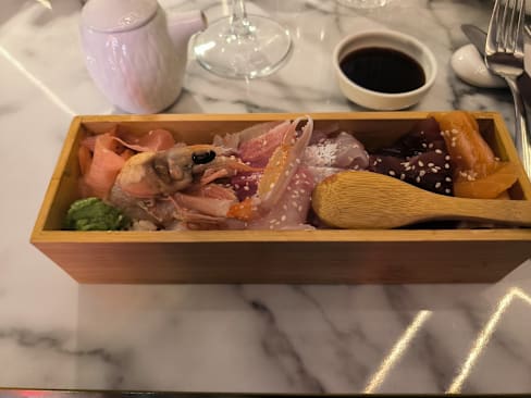7.5/10I wasn’t overly impressed with the meal itself, the edamame’s were overcooked, the mixed sashimi wasn’t worth the cost, I received 3 pieces of tuna belly which were unchewable, essentially, if the fish isn't aged enough, the fat won't break down and the sinew will remain tough, making the sashimi difficult to chew. The steak “beef sirloin” was poor quality. Service was good considering the waitress was the only person serving.
