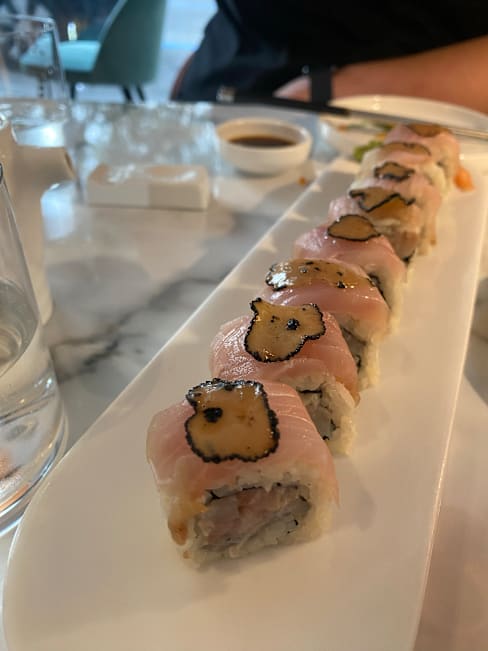 8.5/10Food was really tasty, we took the dragon roll and mushroom gyosa to start and then risotto and tagliolini - with the discount it was amazing quality for price! Maybe a little expensive at regular price.