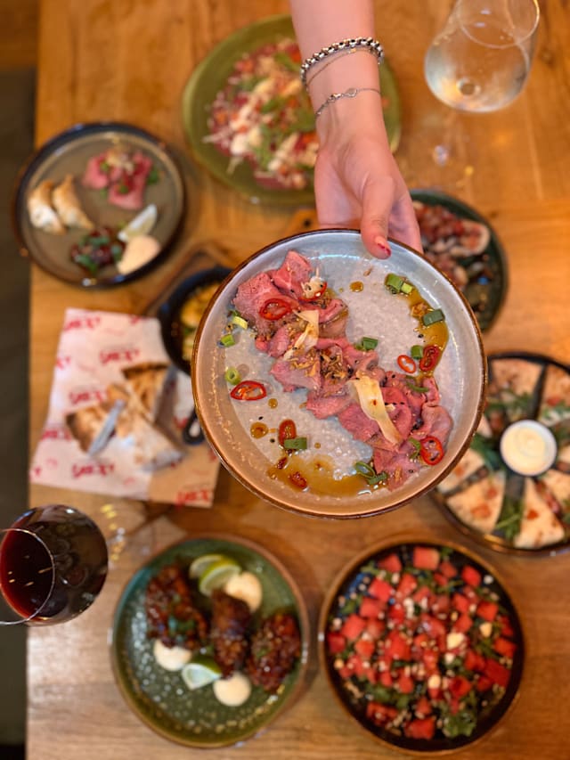 - Beef tataki, gyoza, Korean fried chicken