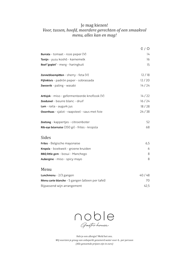 8.5/10We were in Noble for my sons 4th years birthday, I can say it is not a good choice to dine over Noble with small kids but it was our choice not their fault. I can recommend especially artichoke which has a signature of a creavite chef. Turbot also was really good. I ll definetly visit Noble again to try different dishes in their menu when i pass by Den Bosch.