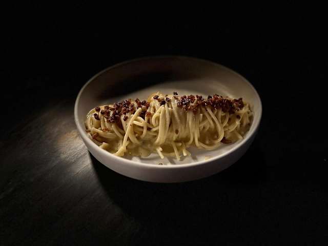 - Mafaldines enrobées d’une crème onctueuse au parmesan, subtilement parfumées à la truffe d’été.