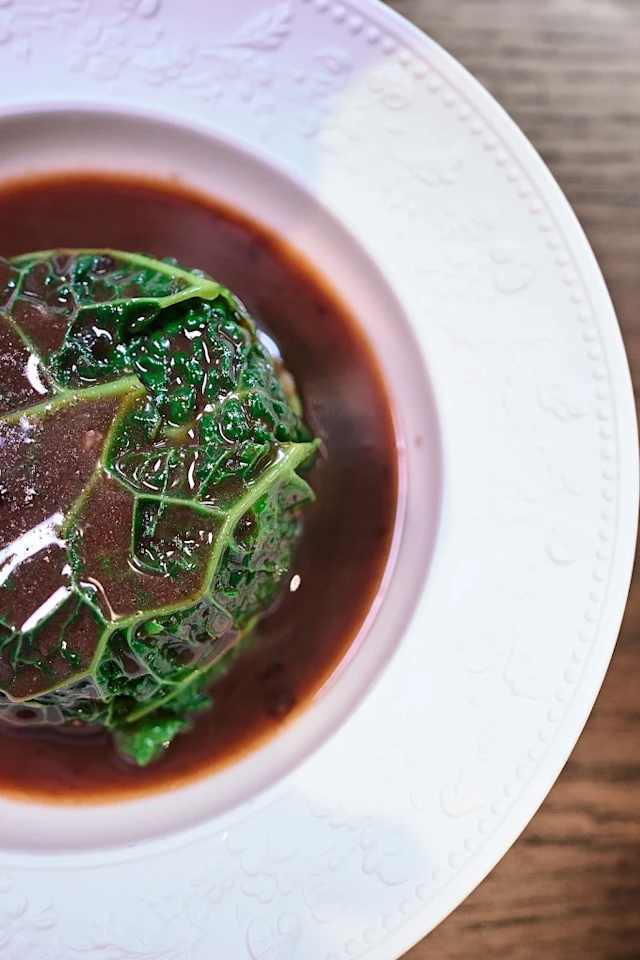 - Magret de canard, topinambour, chou kale, sauce au vin rouge