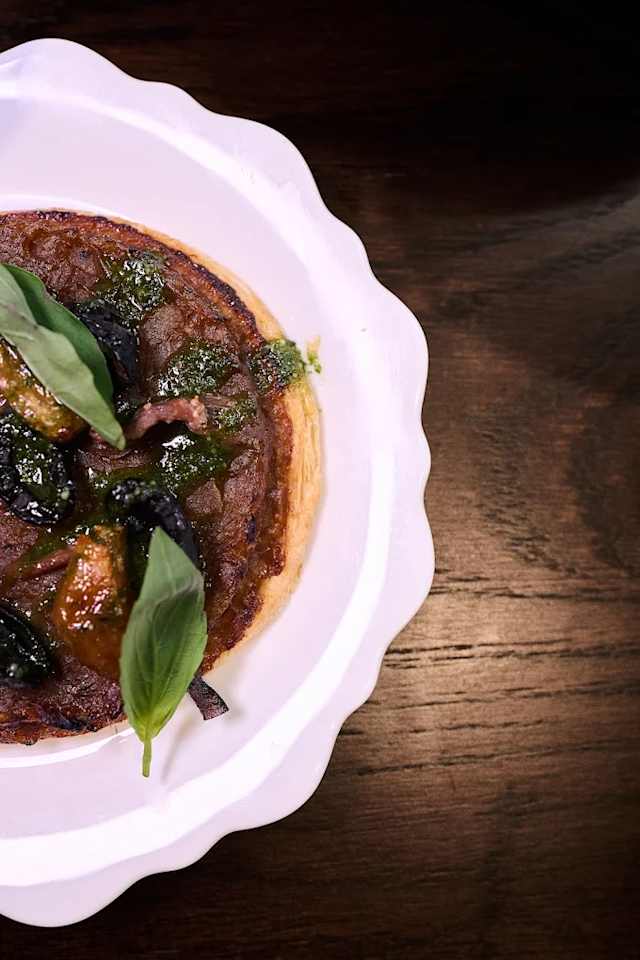 - Gravlax de boeuf, confiture de jaune d’oeuf, soja, granny smith