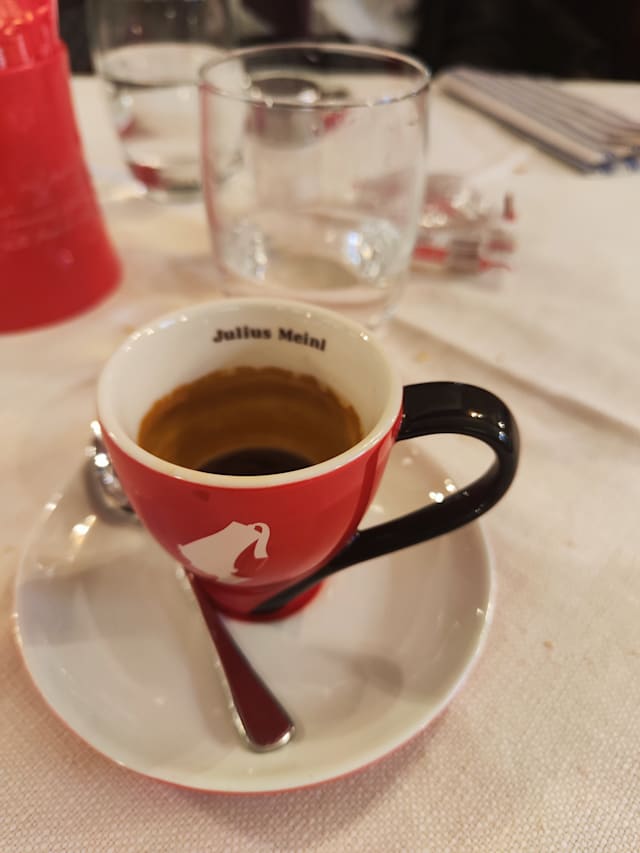 8.5/10Pretty quiet evening probably due to time of the year. Food was quick, like probably too quick if you know what I mean. Only one Chardonnay on the list but they brought a different one and it was much more expensive and I did not know until the bill arrived. Ran out of Tiramisu, but that was the fault of the couple that came in and only had tiramisu and shared a coke the Tiramisu stealing tight wad idiots. Overall I would say it’s a fairly good place to eat at fairly good rates, probably mid range for the restaurants in that area. It’s fairly close to St Marks square and so still a little touristy. In high season d probably avoid and go over the Rialto and move away from the tourist areas, hope this helps someone to decide where to eat but lat word would be don’t be afraid to eat here, it’s absolutely fine