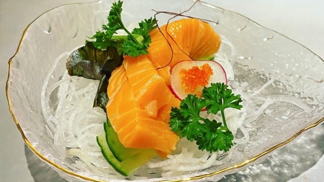 Sashimi variado (ventresca de atún, salmón, hamachi, vieira, atún bluefin)
