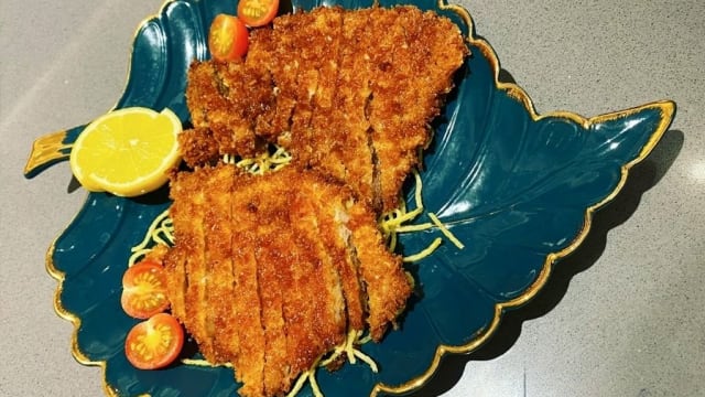 Tonkatsu: chuleta de cerdo ibérico empanado, crujiente de patatas y tomate