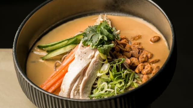 De fideos soba, cacahuete garrapiñado, salsa satay y viñagre añejo de arroz