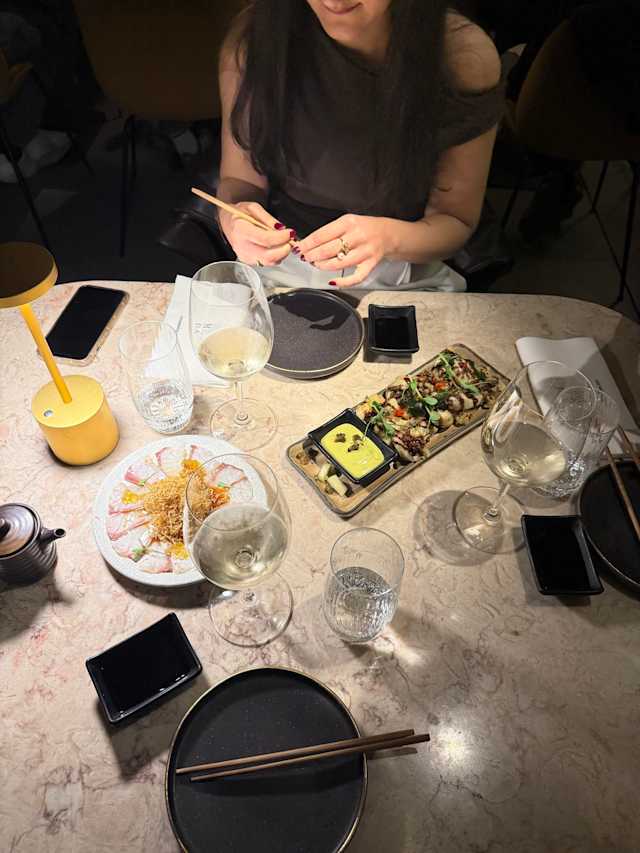 8/10Not fan of fusion cuisine even if they put some efforts on it. The caranguejos Tempura was tasteless as some generous brown sauce on it, killing the taste of it, the sushis without relief and service was sympathetic and correct without a big knowledge of the wine menu. A white wine of Alentejo is definitely not similar to a vinho verde. It is basic. I will come back for the business Lunch, more traditional. Dinner was disappointing. Shame because we tried Scusa ( same owner) next door, one week before and we loved the experience.
