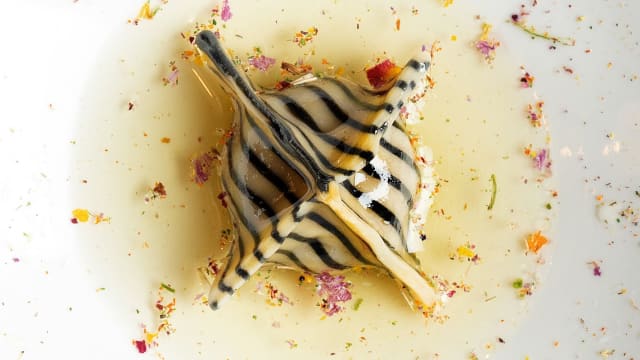 - Ravioli de ricotta y calabaza, amaretto, avellana, con mantequilla y salvia