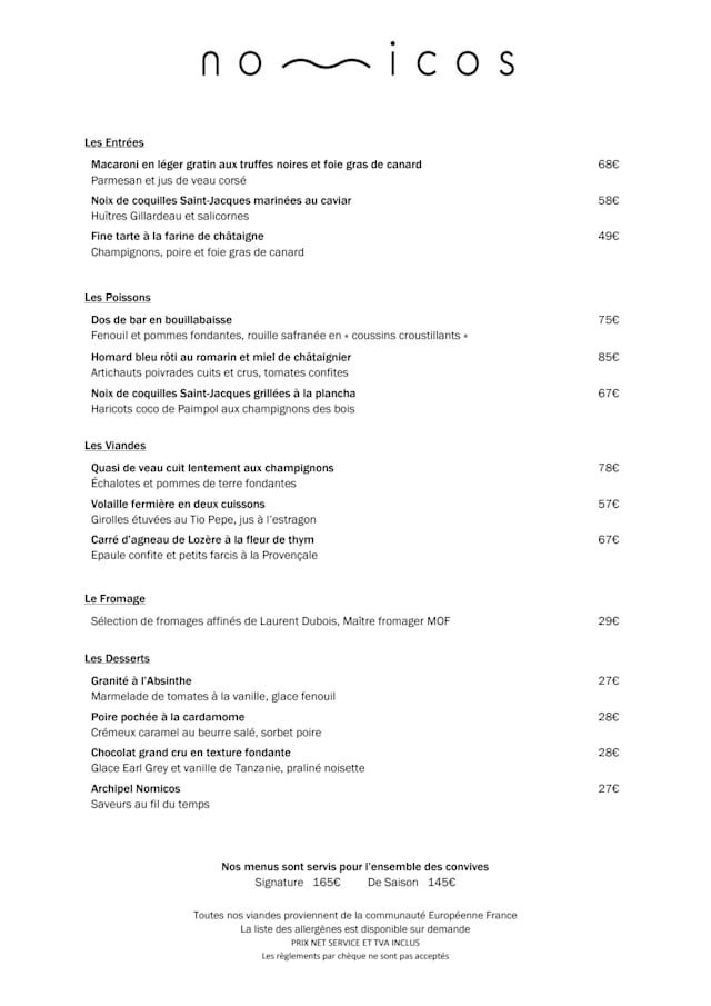 10/10I might be biased, but I think this is the best restaurant in Paris. My family has visited quite a few restaurants during our Thanksgiving stay in Paris, but unanimously chose to return to Nomicos for seconds. Every dish is well-executed and elevated. Beautiful portions, very filling comfort food. The sauces are elaborate and next-level. The service is subtle and friendly. Will definitely return again.