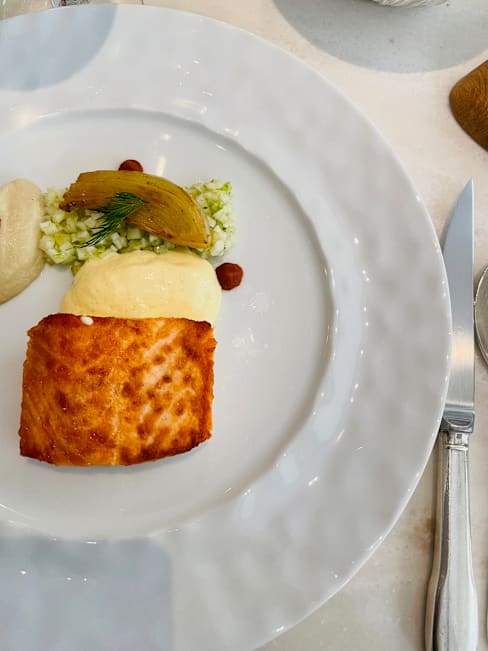 6/10This was my husband’s and my least favorite meal during our whole time in France. Every single savory dish was under salted. Even my husband, who prefers his food less salty than I, felt that all the dishes failed to live up to their potential for lack of salt, so I knew it was bad. In addition, our first dish was strongly flavored with fennel, our fifth course was a dessert flavored with star anise, and our sixth and last course was a dessert was flavored with absinthe. These are all flavors in the “licorice” family, and for a chef to decide to use this strong and not necessarily well-liked group of flavors in half of the six dishes was a huge disappointment. The meal tasted way too much like medicine. Since that meal, I have had so many good dinners in France for 1/4 or 1/5 of the price. I don’t believe it deserves the Michelin star it has, and my impression of the chef is that he is someone who knows how to cook but not how to eat.