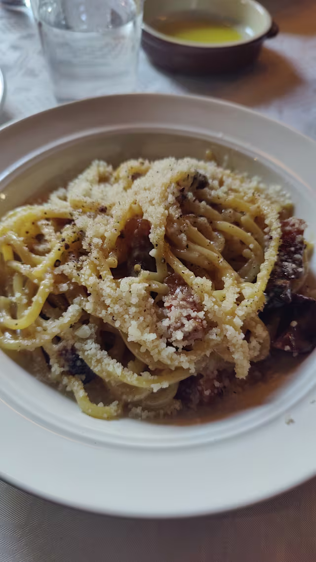 - Egengjord spaghetti, tryffelpecorino från amatrice & svartpeppar