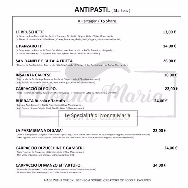 Nonna MariaThank u so much !!! We are happy to see u had a good time in our restaurant !!! Hope to see u back really soon !!! Enzo & Sophie. Nonna Maria Montecarlo
