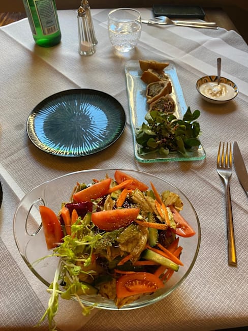 6/10Service: The head waiter or proprietor spoke English fluently but made no attempt to assist us in ordering. The waiter who took our order had no understanding of even a few words of English and appeared to have limited vision as he was not able to make out the menu. Food: The samosas were not crisp. They had been made earlier in the day and the shell had softened. Both main courses were fine as Italian dishes (eggplant parmigiana and artichoke lasagna) but were not Italian-Indian fusion. Wines by the glass were mediocre. The restaurant is in a tourist area. I have no idea how ti was rated #3 in Assisi on Tripadvisor. I should have got a slice of pizza, panini or a padini.