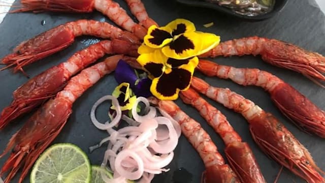 (Gambero rosso con stracciatella e zeste di agrumi,tonno pinne gialle con cipolla di tropea IGP agrocandita)