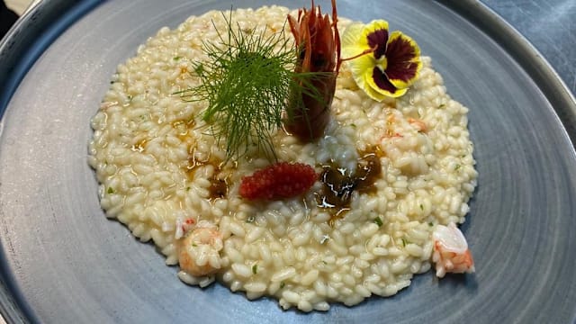 Riso carnaroli con ricciola mantecato alla crema di asparagi