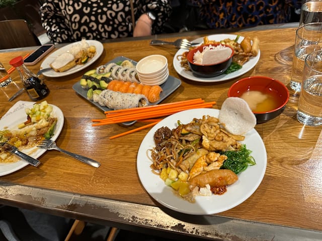 7.5/10Very friendly staff. The food is good, exactly what you would expect from an Asian buffet. The unlimited sushi, waffle bar AND ice cream really took it up and notch and made it worth every krona.