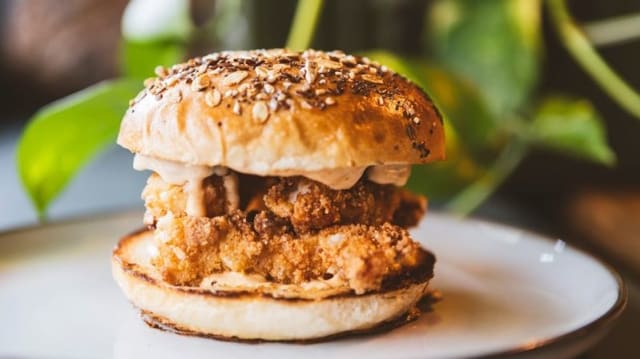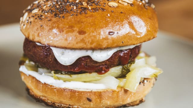 Servito nel nostro bun artigianale dorato al burro. Paneer homemade cotto tandoori, curry & mango mayo homemade, cetriolo, cipolla rossa pickled, insalata croccante, coriandolo e salsa tatziki. Vegetariano, speziato, pieno di carattere