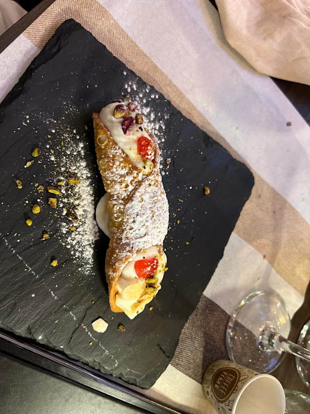 10/10The food and drinks (local Sicilian whites) were fantastic. Stuffed sardines, bread meatballs in rich tomato sauce, local pork stuffed ravioli. Lovely ambience, great service and some free treats too. What’s not to like ?