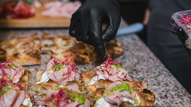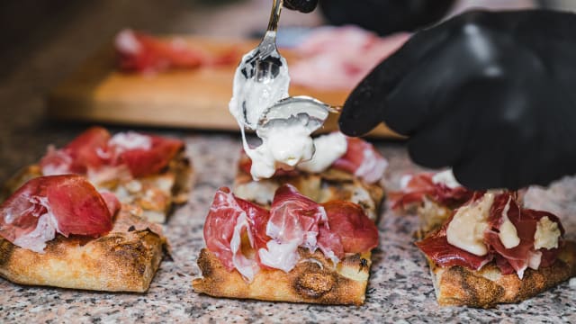 Pinsa tagliata e imbottita con prosciutto crudo di parma 18 mesi o mortadella bologna igp