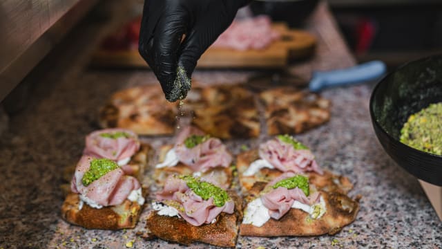 Mortadella bologna igp, stracciatella di burrata, pesto di basilico