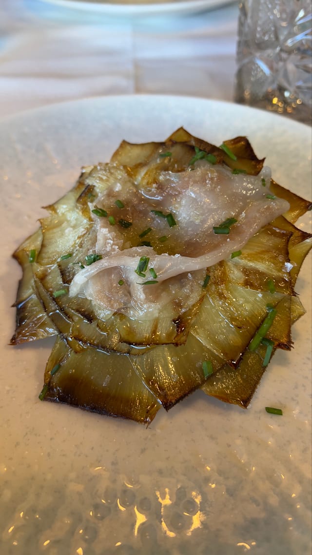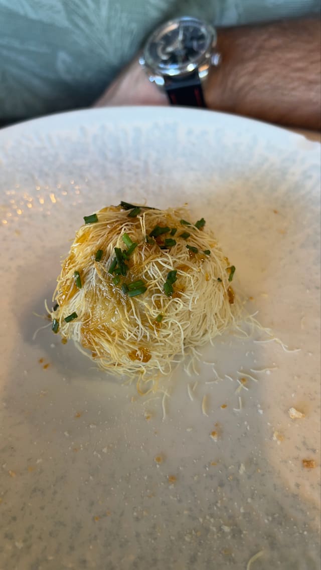 Bacalao fresco al horno sobre ensalada del mar (Hijiki) y espuma de eneldo