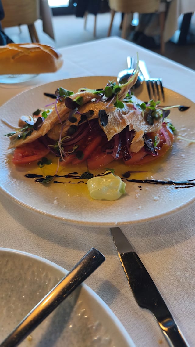 Ensalada de ventresca con tomate de temporada y emulsión de eneldo