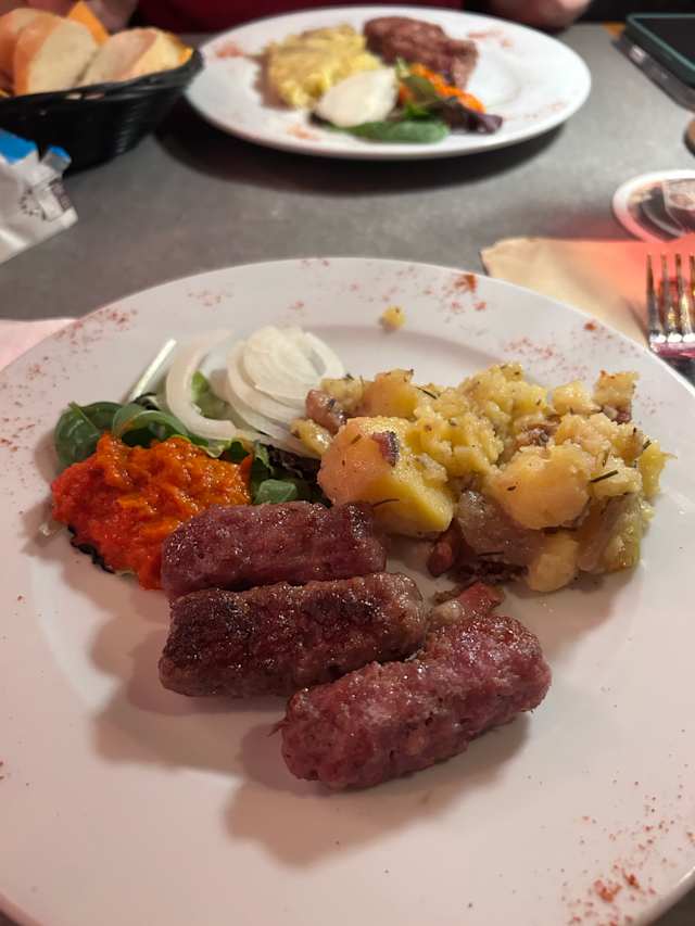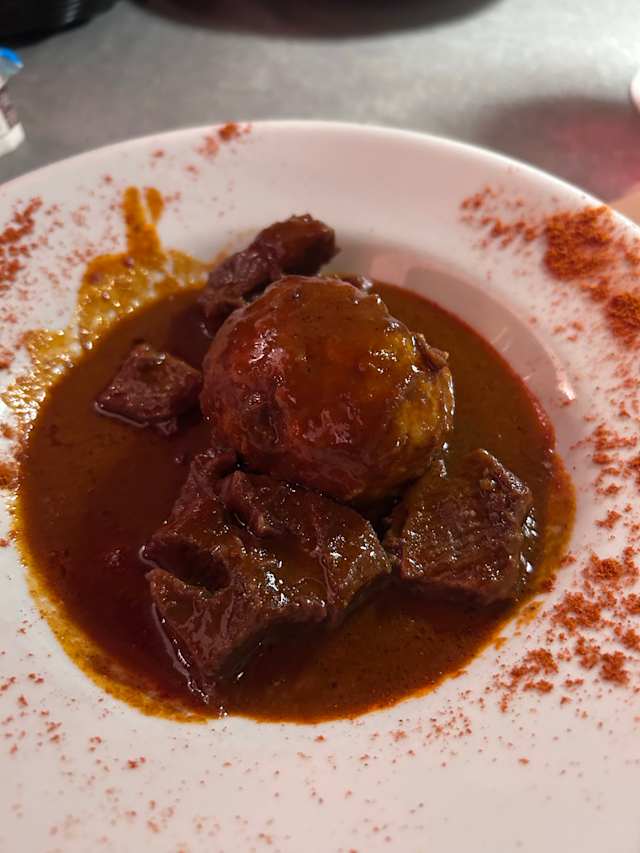 10/10We were a group of four and not that knowledgeable about Slovenian dishes. Our waiter was exceptional as he explained the dishes to us in detail and he had a pleasant, fun personality. All of the dishes were delicious, from Goulash to Cevapici (small grilled meat specialty) and the stewed ribs. I ordered the pork ribs and they were outstanding. This is a casual, quaint restaurant and I would highly recommend it.
