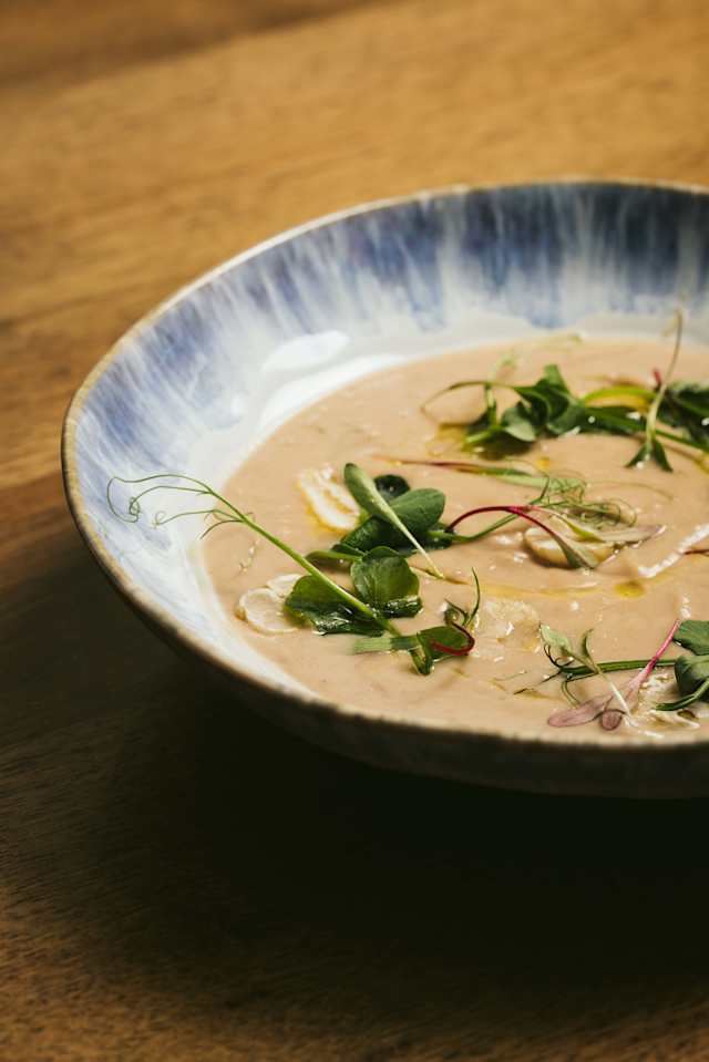 - Sopa aveludada de castanha e funcho com creme e noz-moscada.