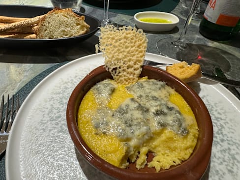 7/10The staff was very professional and friendly. My Cacio Pepe was OK, my polenta was very good. The tomatoes in my wife’s tomato & mozzarella were not ripe and her mixed fried seafood was very average. We have no idea how the average rating was 9.8?