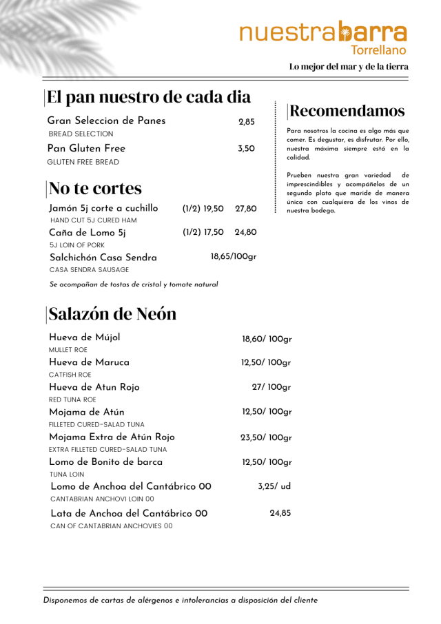 Nuestra Barra Torrellano is identified as offering spanish cuisine.