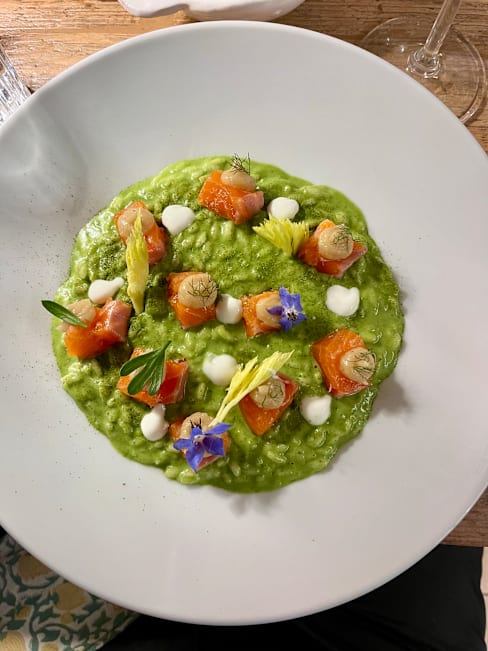 6.5/10Ambiance and setting attractive. Friendly, attentive staff. However the food is not good. Amuse bouche consisting of lean was cold and clearly not prepared immediately. I ordered the 65 degree egg starter. It consisted of a huge bowl of gloopy slimy foam, lumps of too large red onion and egg. It was not appetising at all, I couldn’t eat it. The accompanying bread and side dish were tasty. I had risotto as a a main course. Again a huge portion, far too much butter was used in the cooking process and was the dominant flavour. I really did not like it and could not eat it. It was horrible. This was an expensive mistake. Are they riding on the wave of Stanley Tucci’s recommendation? I did not realise he had recommended this restaurant until I searched reviews after I left the restaurant. I really am disappointed in the Michelin guide for this recommendation, it is undeserved. I had several delicious meals in Florence at restaurants such as Cucina, Cuculia and Il Santo Benitore which were authentic casual fine dining venues. Apart from the kind and friendly staff, I would not recommend this restaurant at all.