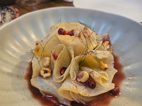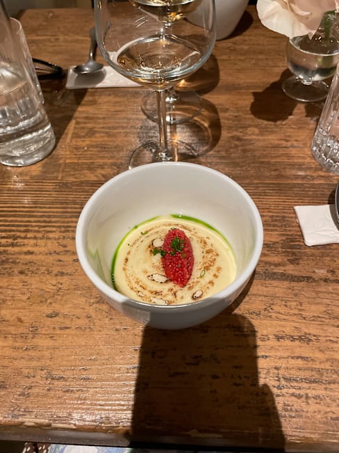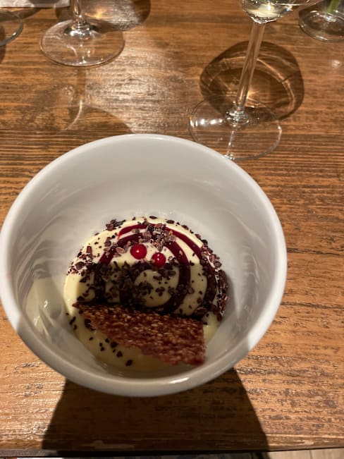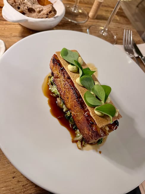 9.5/10We thought this was excellent value for money. Dishes are substantial with super quality local and seasonal ingredients. Service was great and very friendly. We had a view of the team in the kitchen, they were cool calm and collected in producing great dishes. We could take our own wine for a photo opportunity of a friend’s great wine in a special location.