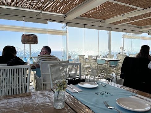 8.5/10Good food, verry tastefull and nicely presented. Great service and they talk english verry well. From our seat we had a beautiful vieuw on the ocean. It was great.