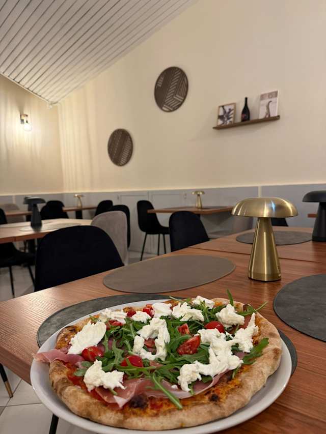 - Pomodoro, mozzarella, bresaola, burrata, granella di pistacchio.
