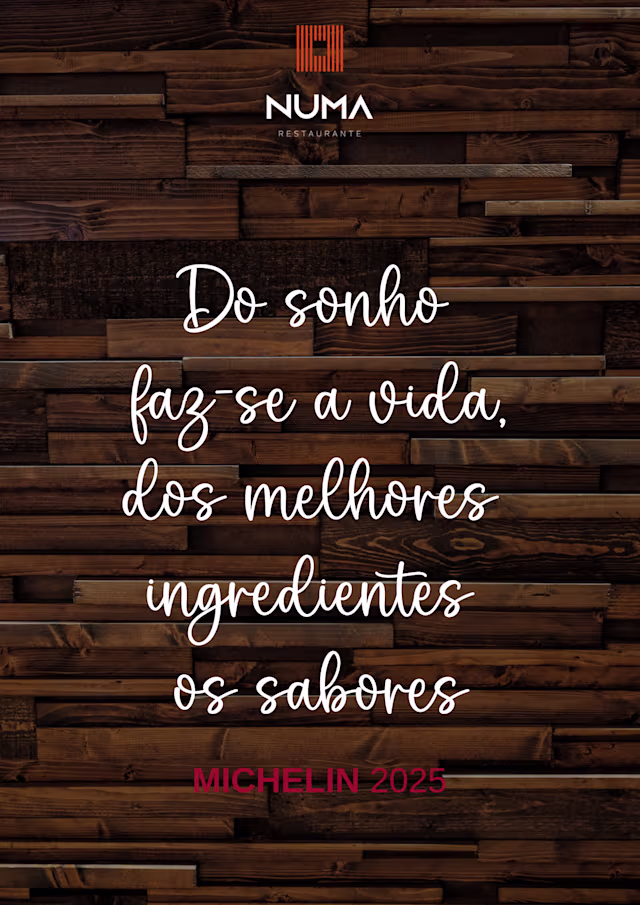 Numa RestauranteDear Mario Lyra, It was with great pleasure that we welcomed you to enjoy our suggestions. Every day we work focused on you and the magic of providing you with these moments. We appreciate your comment, which is very important for us to continue evolving. My visit to yours, and to all others, is part of our DNA to provide them with an even more enriching experience. We look forward to your next visit for new experiences! All our successes, awards, honors and guides are always dedicated to you!! See you soon... Thank you very much, NUno & MAnuela NUMA Restaurante