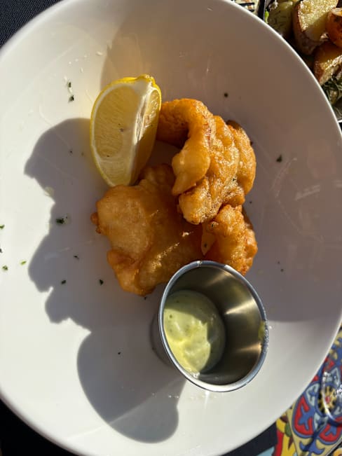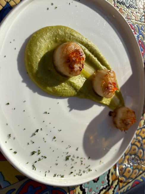 9.5/10Juicy scallops, crispy fried cod with aioli, waxy pink Rozevaal potatoes. Also some good wines including a Greek white.