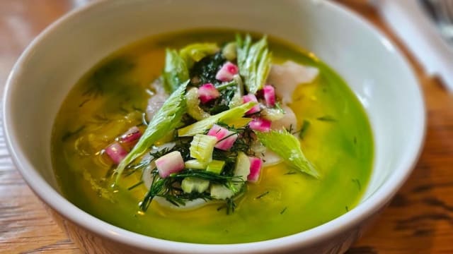 6.5/10Good food and nice environment, but unfortunately many other things didn’t make up for it. First of all - service was kind but very slow. It was Monday evening with a few tables occupied, and there was only one person in the kitchen and one serving the tables. It took 20 minutes from the moment we ordered to get the wine/cocktails, 35 minutes for the appetisers and 1.15h for the main course. Additionally, most of the dishes we wanted were either not available (the steak tartare and tarte citron) or were not matching the description, e.g the lamb was served with roast potatoes instead of potato puree (but this was called out upfront) and the chocolate mousse was missing both the berry syrup and the crumble. Maybe Monday isn’t the best time for this place and I hope the experience is better on other days. Additionally, two dishes (the roasted potatoes and the dessert) were not discounted in the final check - while only drinks should have been excluded.