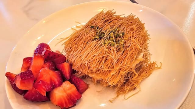 Éclats de pistaches torréfiées sur une viande hachée finement épicée, fondante et croquante à la fois. Un plat élégant, servi avec un riz basmati délicatement infusé et une salade fraîche, taboulé ou fattouch