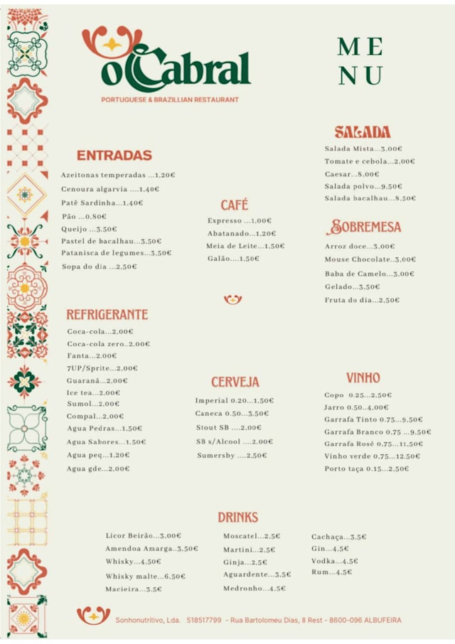 10/10A Great Dining Experience in Albufeira! I’m from Lisbon and recently visited Albufeira with a friend. We were looking for a Brazilian restaurant for dinner and ended up at O Cabral Restaurant — and we’re so glad we did! The service was excellent, especially from the friendly Brazilian gentleman who served us the maminha and recommended a great wine. He was very attentive and really made our evening enjoyable. The food was delicious and surprisingly affordable. I’ll definitely recommend this place to anyone visiting Albufeira. A true hidden gem!