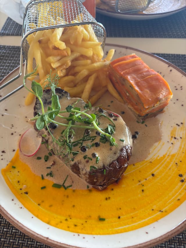 6/10I think you should have the option to choose between fish and meat . I like surprises but I they should have 2 options to choose from . For me the best was dessert . They should have music to better atmosphere. Our waiter explained everything perfect . I loved that the chef at the end of our meal came to our table . You don’t see that happen in many restaurants