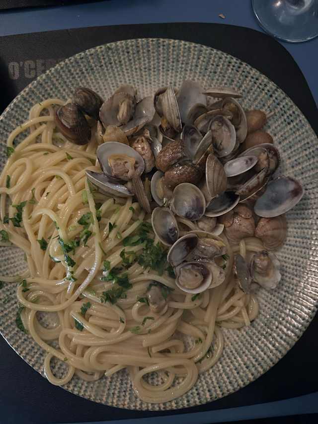 - Profumo di aglio, e salsa emulsionata di cozze e limone